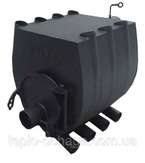 Конструкція печі сталева з оперізувальним трубами для конвекційного обігріву. Піч калорифер забезпечує повільне і повне згоряння палива в двох камерах. Широка завантажувальна дверцята дозволяє виробляти топку різними по довжині полінами. Піч тривалого горіння, що працює за принципом повільне тління, що говорить про її високу ефективність роботи. Економічна витрата палива – ще одна перевага печі на дровах. Для забезпечення попадання повітря в топку на дверцятах печі розташований спеціальний регулятор тяги. Всі конструкції Булерьян однотипні, так як оснащені двома камерами згоряння, в яких відбувається згоряння дров і допалювання пічних газів.