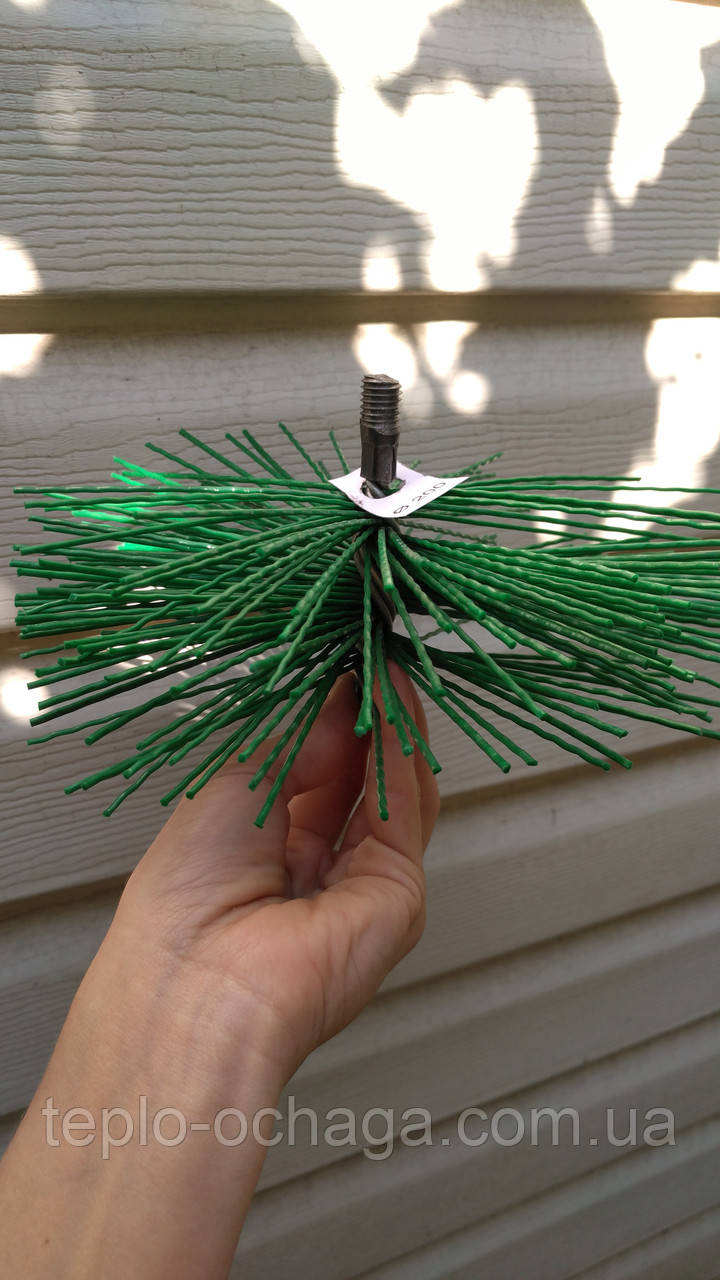 Щітка для чищення димоходів, 500 мм пластик призначений для видалення сажі, нальоту з димовідвідної труби. Щетинки міцні, посилені дротом. Виробник — Польща, спосіб з'єднання — нарізне (М12). Якість аксесуара — пристосування вистачить вам на довгі роки. Разом із йоршом потрібно використовувати штанги для чищення димоходу (для чищення знизу вгору) або трос (зверху вниз). Процедура займе у вас пів години часу, а ефективність роботи агрегату підіметься в рази.